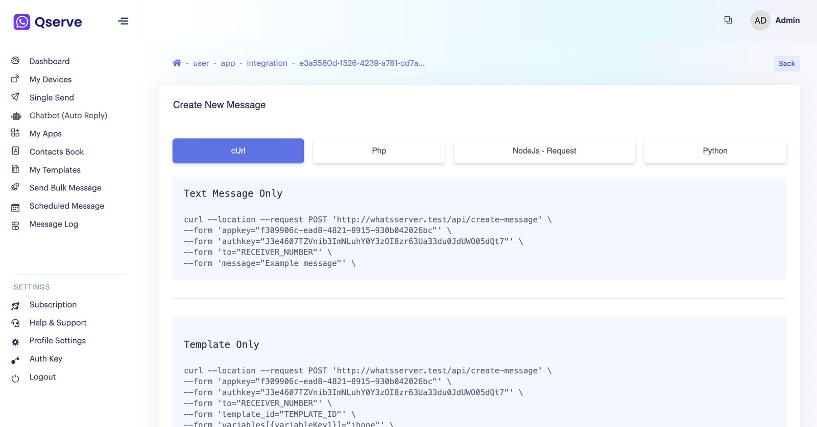 - Bulk message